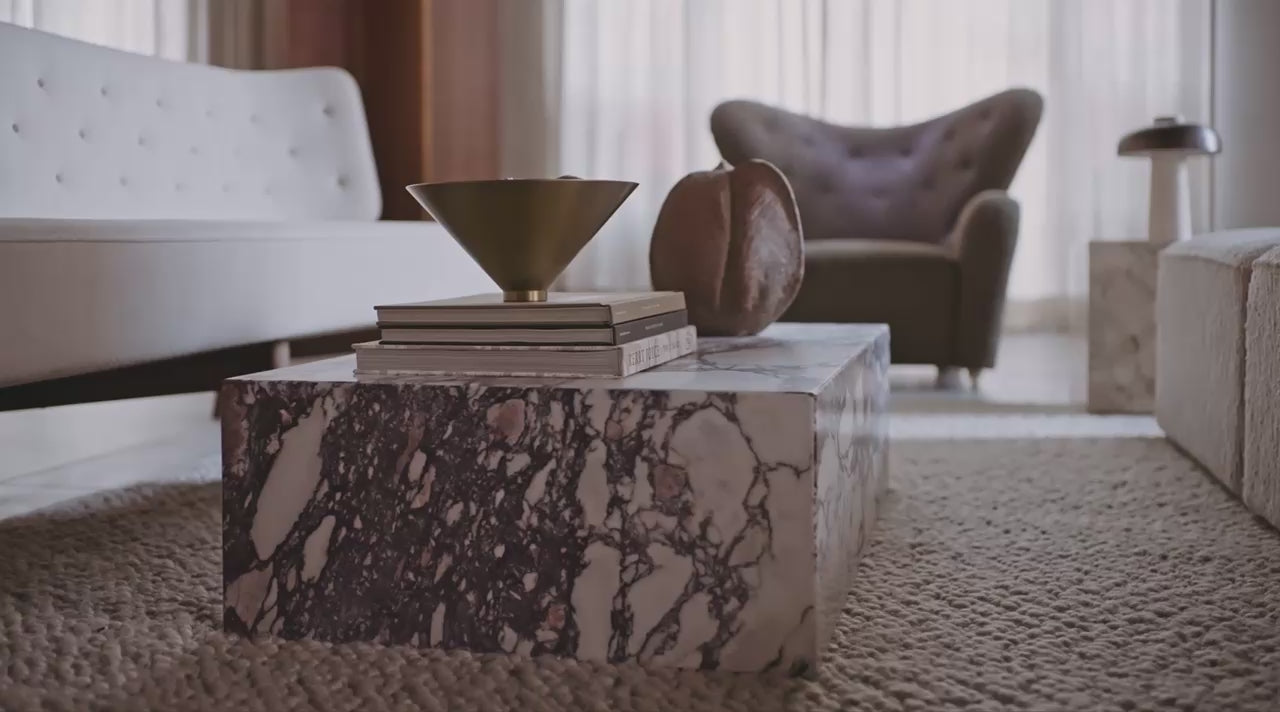 In addition to Calacatta Viola, Plinth Low is also available in a selection of other luxurious materials, including Grey Kendzo, Nero Marquina, Kunis Breccia and White Carrera marble. Each material has its own unique look and character, giving the table a versatility that suits a wide range of styles and preferences.